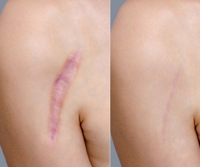 - Farbliche Anpassung der Hautnarben mit der ursprünglichen Hautfarbe